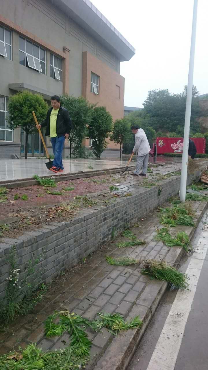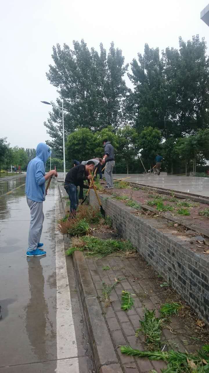 期间,天空骤然飘起密密雨滴,全体志愿服务人员依然不畏雨水井然有序地清除拆除场地周围的杂草、杂树和废弃物。经过大家奋力劳作,原本杂乱不堪的拆除场地瞬间变成了干净整洁的平台,也为学校今后开展活动提供了新的场地空间。