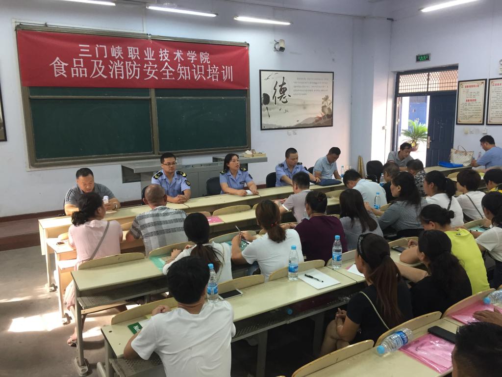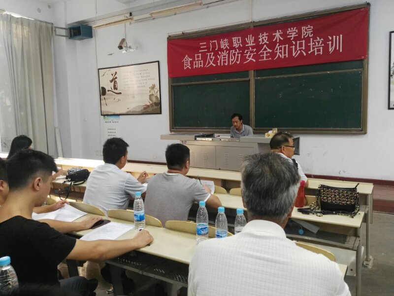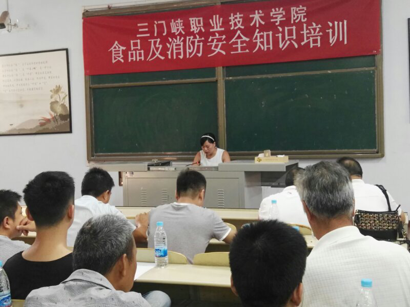 为切实做好我校食品、消防安全工作,促进食堂及商业网点从业人员安全意识,不断提高自身管理水平,预防和减少学校食物中毒和火灾事故发生,8月27日—28日,我校总务处联合三门峡市食品药品监督管理局开发区分局和三门峡市消防支队举行了为期2天的食品安全及消防安全知识专题培训会议。市开发区食品药品监督管理局副局长高娜、科长于飞、陈铭。市消防支队干事蔡晓晨、我院总务处副处长张耀祖、保卫处科长孙永生出席会议并讲话。会议由学校膳食科负责人郑新乐主持,学校膳食科全体炊事人员、商业网点从业人员及各楼管理人员共计200余人参加了培训。