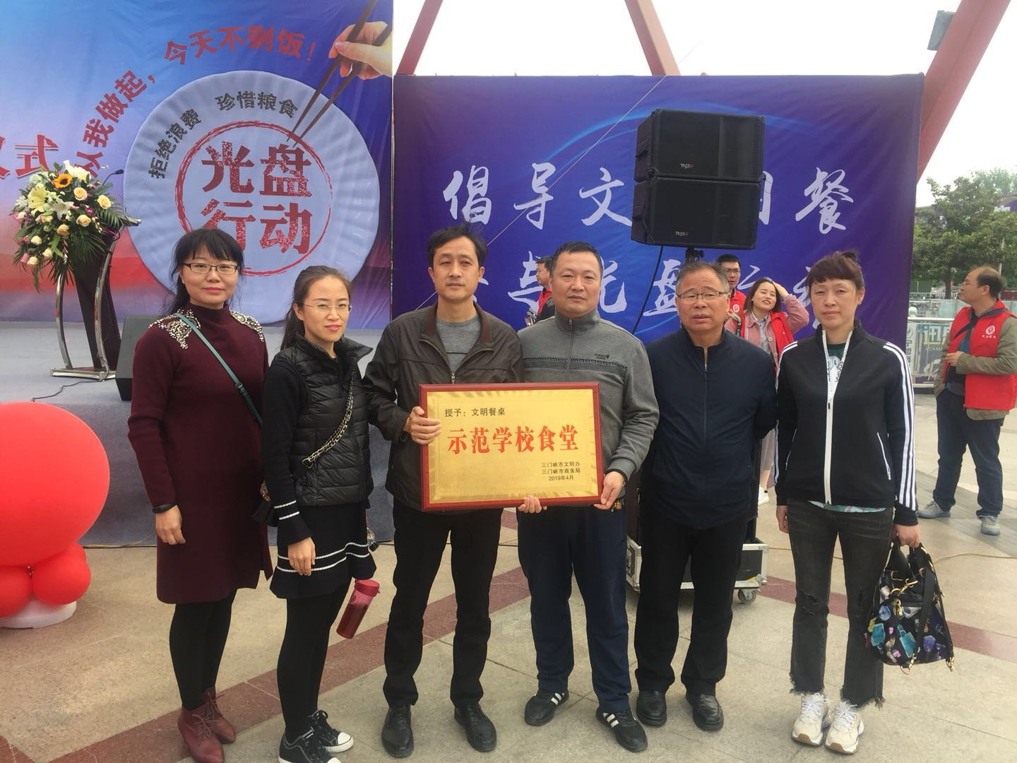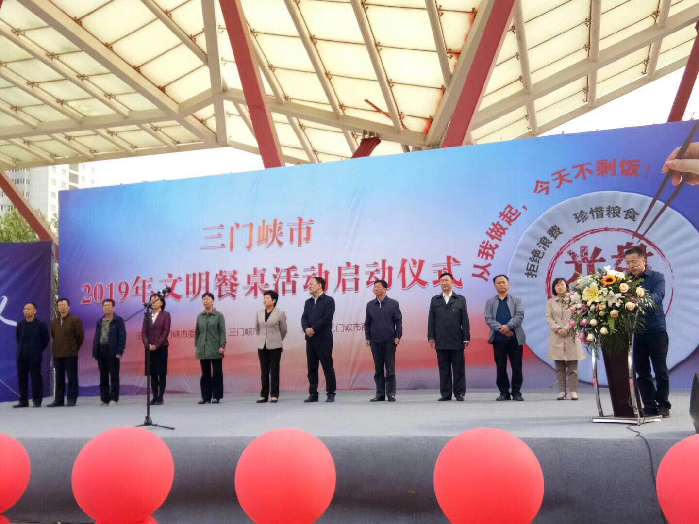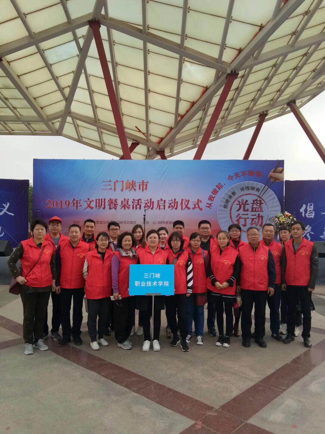 4月19日上午,三门峡市“文明餐桌”活动启动仪式在湖滨广场举行。我院教工餐厅、1号学生餐厅被授予全市“文明餐桌”活动第三批“示范学校食堂”荣誉称号。学院总务处处长翟艳辉作为示范学校食堂代表在仪式上做了典型发言。学院副院长李勤代表学院出席活动并在仪式签名墙签名。学院20名志愿者参加了启动仪式,共同“倡导文明用餐、参与光盘行动”。