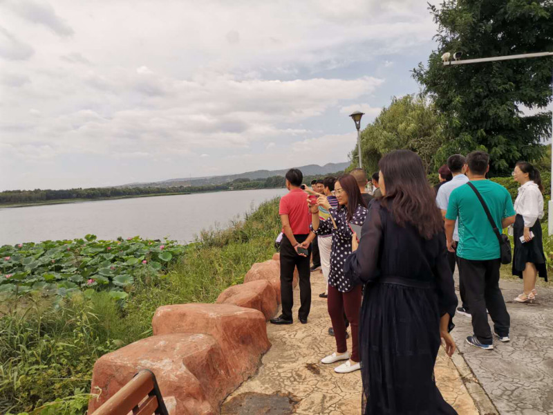 评价验收组视察我校砚池湖雨水收集及校内绿化喷灌系统