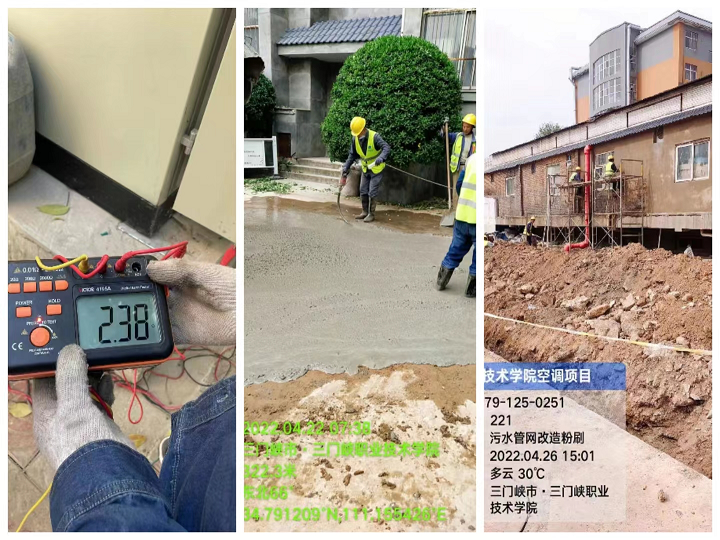 学生宿舍空调安装工程是学院2022年重点推进的服务师生实事工程项目之一。该项工程施工范围广、难度大,涉及到多项改造项目,其中包括电力增容、电线电缆敷设、电控系统升级、桥架、箱变和空调安装等多个项目建设内容;施工中面临排水系统、强弱电通道建设交叉作业,校园地下管网与室内线路情况复杂,施工难度非常大。