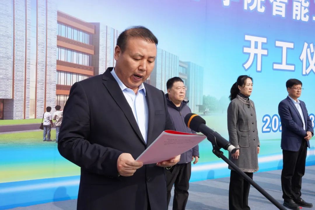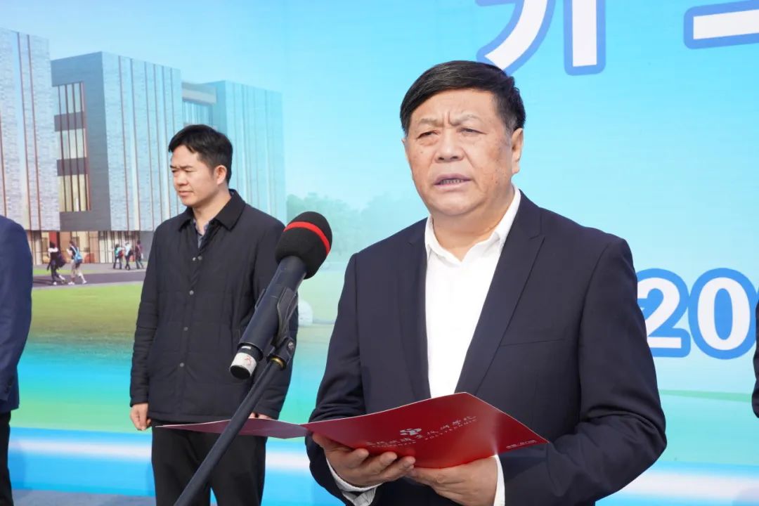 颉潭成代表我校全体师生,向长期以来关心支持学校发展建设的各级领导及社会各界人士表示感谢,并介绍项目情况。他表示,智能工厂实训基地承载着学校全体师生的热切盼望,作为学校产教融合办学资源的重要组成部分,既是服务地方经济社会高质量发展的重要平台,也是学校办学功能的补充和延伸。他希望参与工程建设的施工单位、监理单位高标准、严要求,发扬艰苦奋斗、迎难而上的优良传统,按照“建一流工程,创一流质量、树一流品牌”的要求,精心组织,科学施工,确保高质量按期完成工程建设任务。同时,也希望各上级单位和学校同仁一如既往地支持工程建设,确保工程早日建成发挥效益。