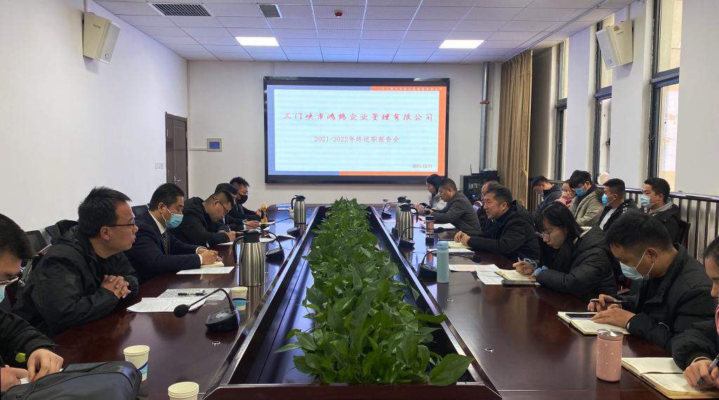 12月31日上午,三门峡市鸿鹄企业管理有限公司召开2021年年终工作述职会。公司执行董事翟艳辉,总经理荆治国出席会议,鸿鹄公司全体员工及灵凤湖校区各经营网点负责人等参加会议。会议由综合管理部李亚楠主持。